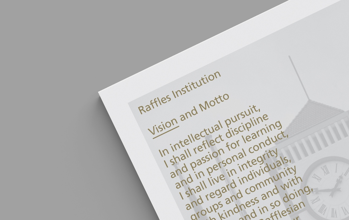Founded in 1823 Raffles Institution is the oldest and most prestigious school in Singapore and counts among it’s past students former Prime Minister Lee Kuan Yew. In late 2008 the Secondary School and Junior College merged and Zebra was appointed to re-brand the school under the new name.