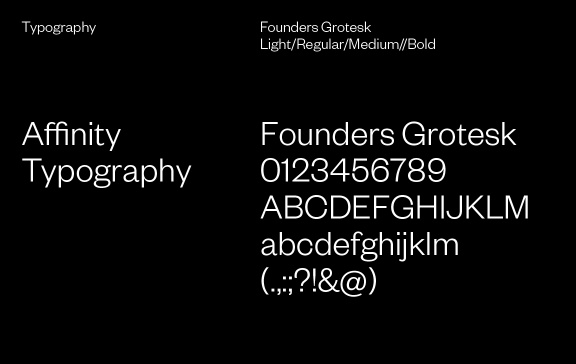 The two letter f’s within the logotype face each other to visually represent the affinity between two separate partners, coming together to achieve a greater good collaboratively. Imagery of twins helps further represent the idea of a close affinity between two parties. One twin represents Affinity’s client and the other represents the client’s target audience.