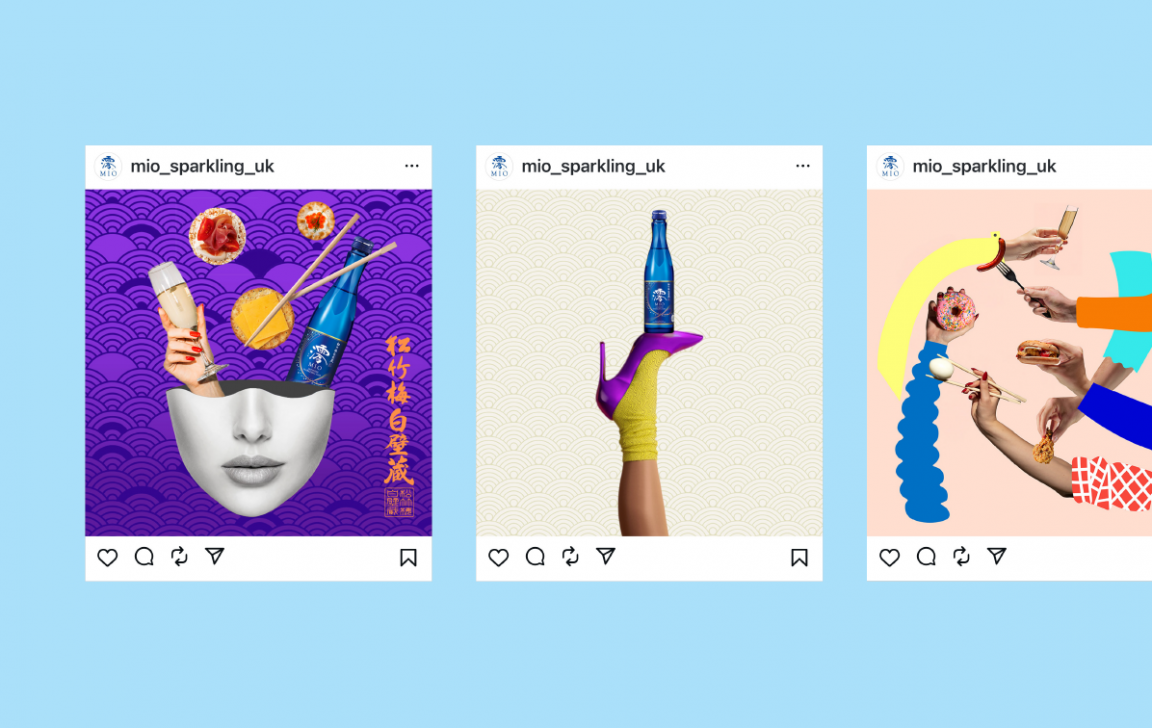 Research and a competitive analysis showed saki advertising always used traditional Japanese imagery and tropes or took a very soft, zen -like approach, so Mio needed to be different. A brand language was created using using bold modern Japanese design elements and iconography, paired with British passion points to create a fresh, unique look that worked at the event and across all social media platforms.